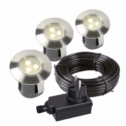 Set bestaande uit drie spots, een hoofdkabel van acht meter en een 12W transformator. De spots van de Birch zijn ideaal voor vlonders, terrassen en tuinpaden. De warm witte lichtbron zorgt voor een gezellige sfeer in je tuin. Plaats meerdere decklights naast elkaar en geniet van het mooie effect. Ook zul je merken dat je je een stuk veiliger voelt. Met de Birch set zijn donkere stukken in je tuin verleden tijd. Warm wit licht en een kabel van 6 meter.