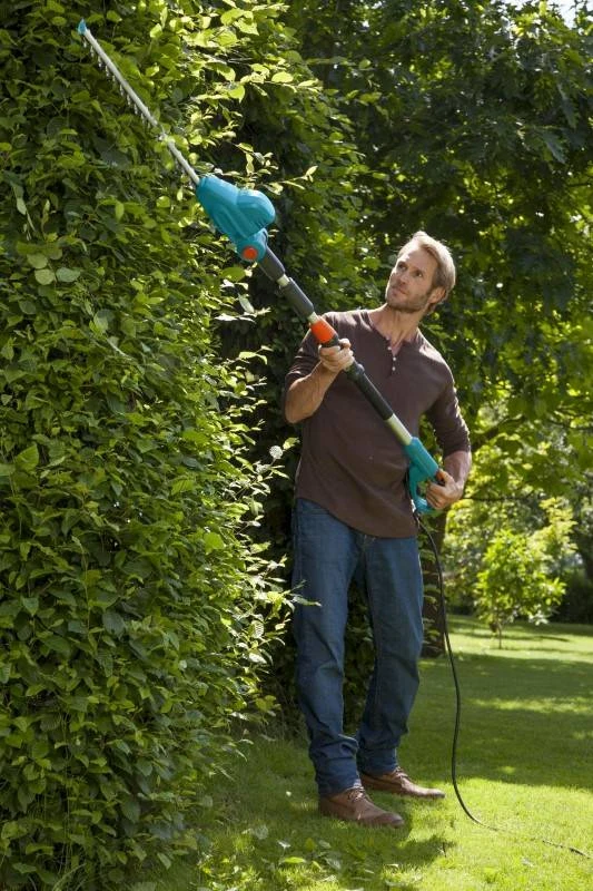 Zelfs als je geen ladder hebt kun je met deze uitschuifbare telescopische heggenschaar THS 500/48 van Gardena moeiteloos hoge heggen snoeien. De kop is kantelbaar zodat je ook de bovenkant van de heg goed kunt snoeien. Ook voor bodembedekkers laag bij de grond kun je deze heggenschaar prima gebruiken: je hoeft niet te bukken waardoor je je rug spaart!