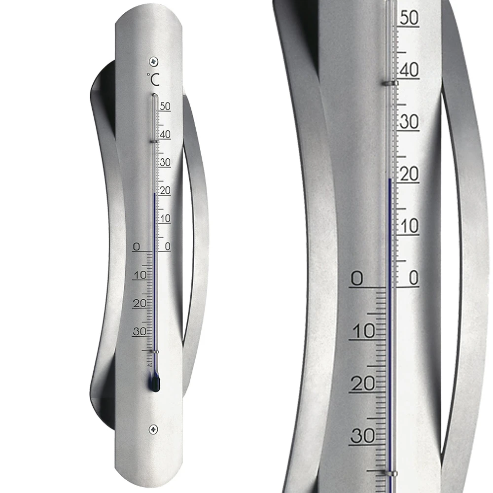 Deze thermometer van 28.5 cm is gemaakt van aluminium. Hierdoor gaat deze temperatuurmeter jarenlang mee en is hij geschikt voor zowel binnen- als buitengebruik.