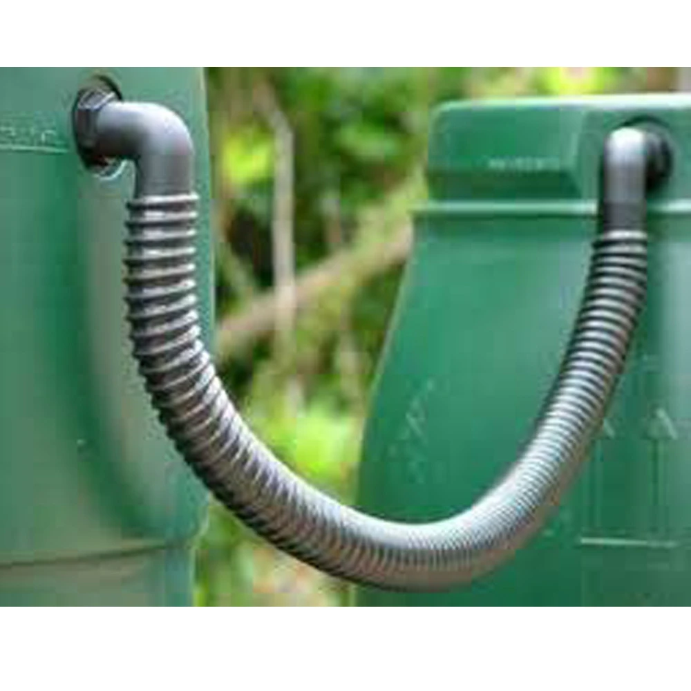 Deze handige verbindingsset kan worden gebruikt om twee regentonnen met elkaar te verbinden. Dit geeft de mogelijkheid om twee keer zoveel regenwater op te slaan. De verbindingsset heeft aan beide uiteinden wartels die het mogelijk maken om de set vast te maken aan de tonnen. Inclusief rubberen afdichtingsringen.